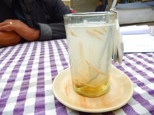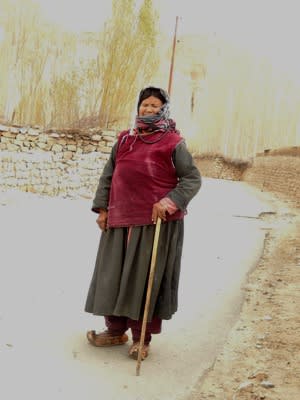 初めてのトイレ休憩の町にて、このおばあさんの靴は伝統的な民族靴