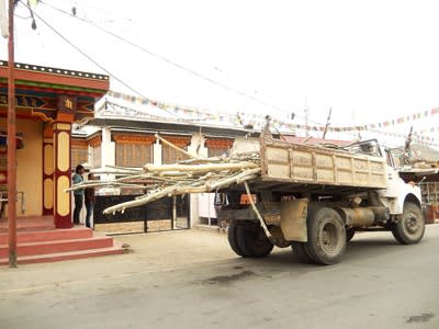 主要建材のポプラを積んでいる