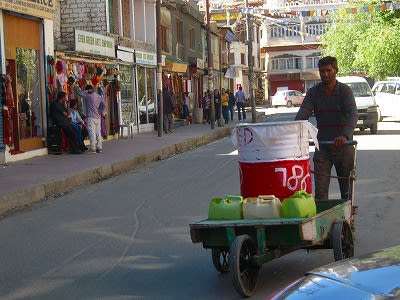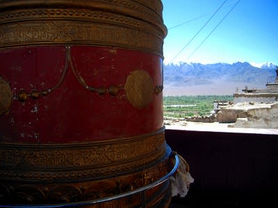 チベットの人々は、時間があるとマニ車を回しながら、長い散歩をする習慣がある。