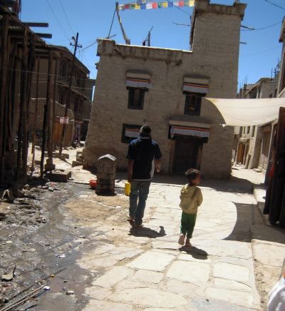 ここのゴンパ(僧院)は山岳部でなく平地の、ごく普通の村の中にあった。