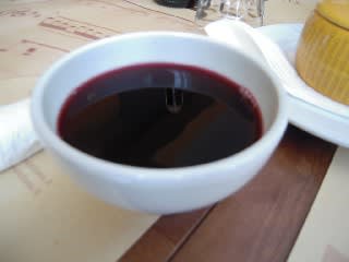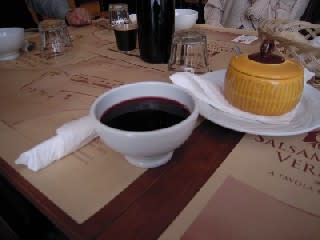 食前酒——-「EMILIANA」ではいきなりボールでワインが。以前何かで見た記憶はあるが、初体験。特に甘くも渋くもなかったが、やや濃いかな?