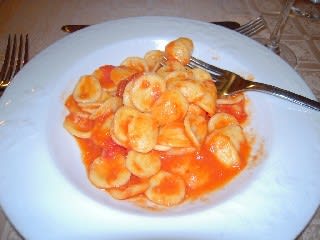 第1の皿:耳たぶ形のパスタ、歯応えしっかりトマト味