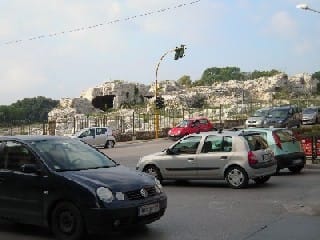 シラクサ宿泊のホテルから朝の散歩で見た遺跡