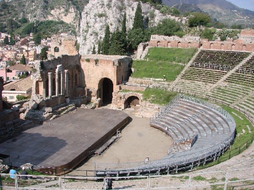 シチリア島には、2つのギリシア劇場がある。いずれもシチリア島東部の海岸に近い丘の上にある
