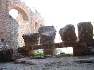 タオルミナの劇場も底の部分、舞台の周りには通路があり、上演者が出入りする入り口もあり、すべて石造りのままのようだった。