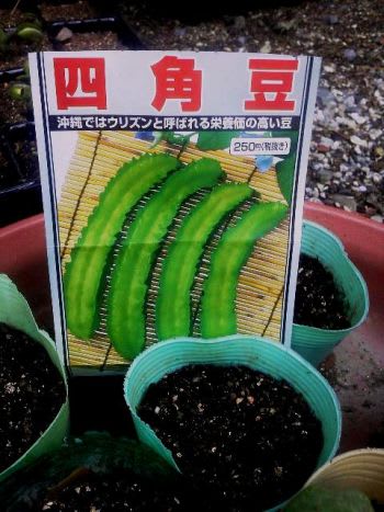 ちろりん村で「美味しいよ」と勧められた四角豆。まだ眠っている。