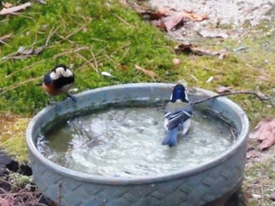 長野県にもやっと春らしい日が訪れ、先日まで氷のはっていた水鉢に、