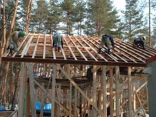 片流れのかっこいい屋根に、三州瓦を載せる基礎工事が始まりました。